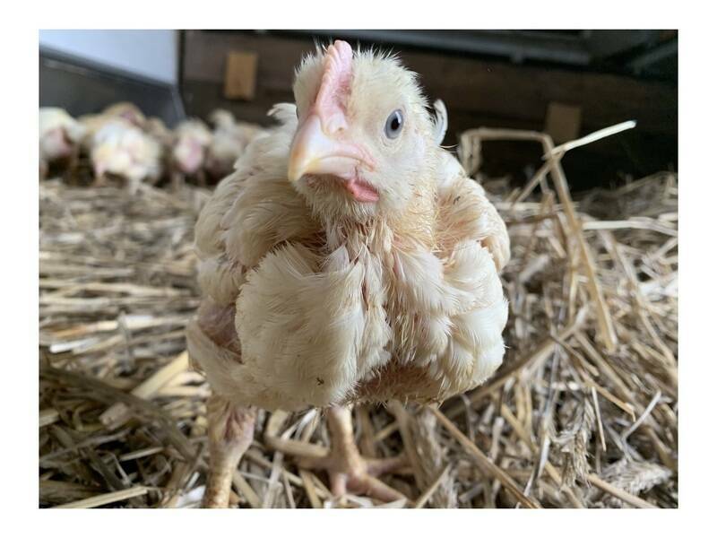 Unsere Hähnchen kommen als Küken zu uns und sind bis das Federkleid vollständig ist im Stall gehalten.