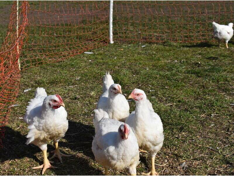 Danach ziehen die Hähnchen in einen mobilen Weidestall und dürfen jeden Tag auf die Weide.
